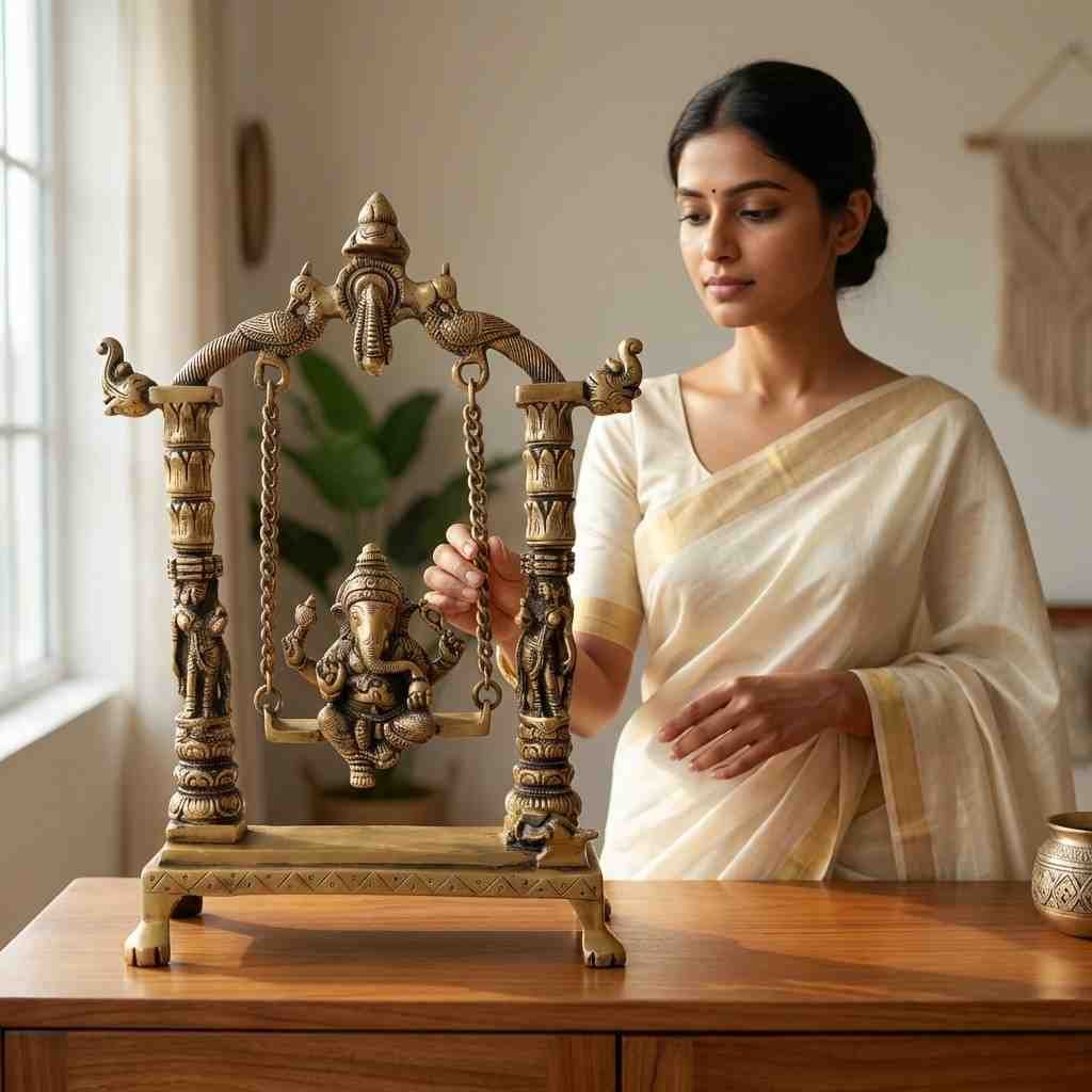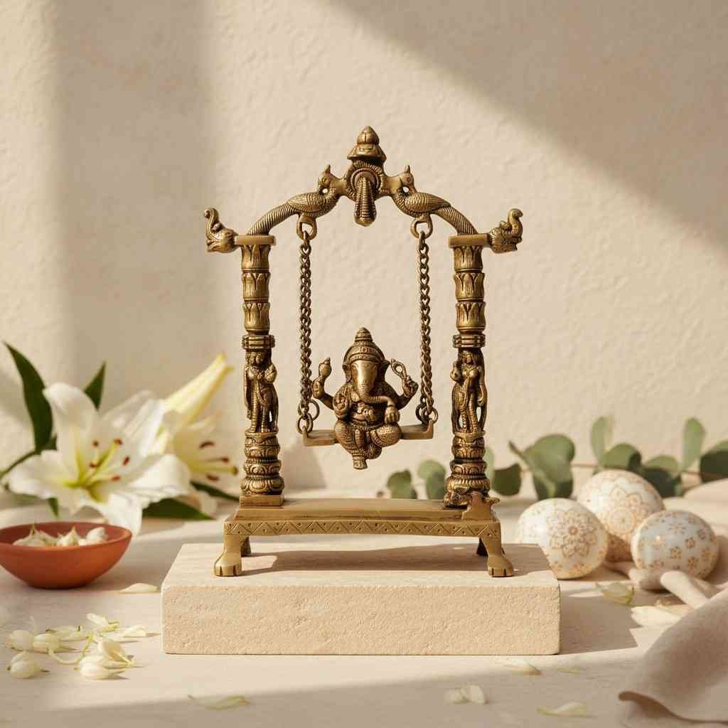 Vedas Brass Ganesha Jhula Big Idol & Figurine Showpiece