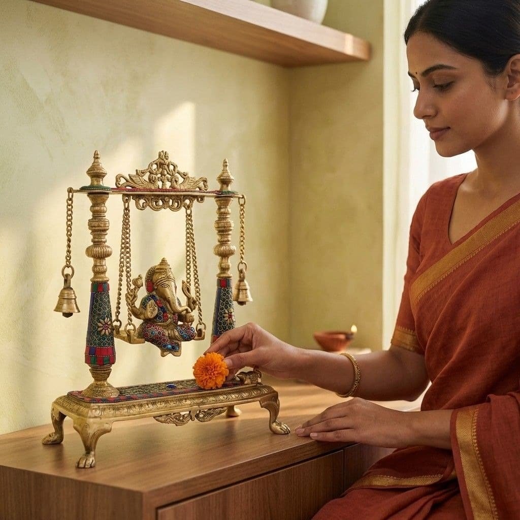 Vedas Brass Ganesha Jhula Small Idol & Figurine Showpiece