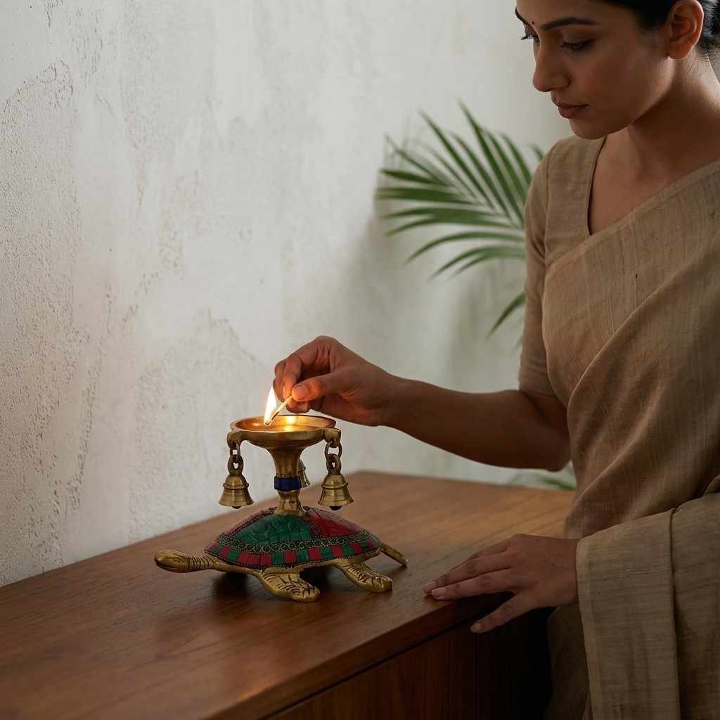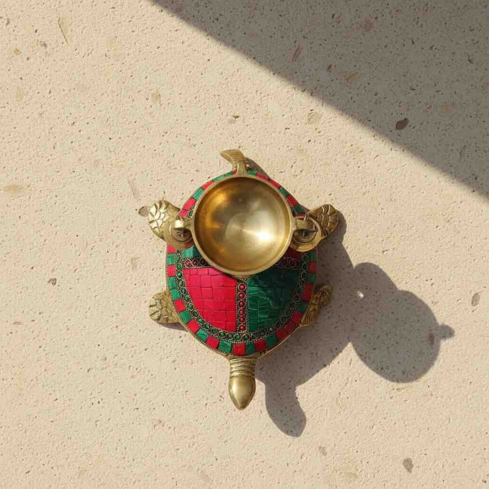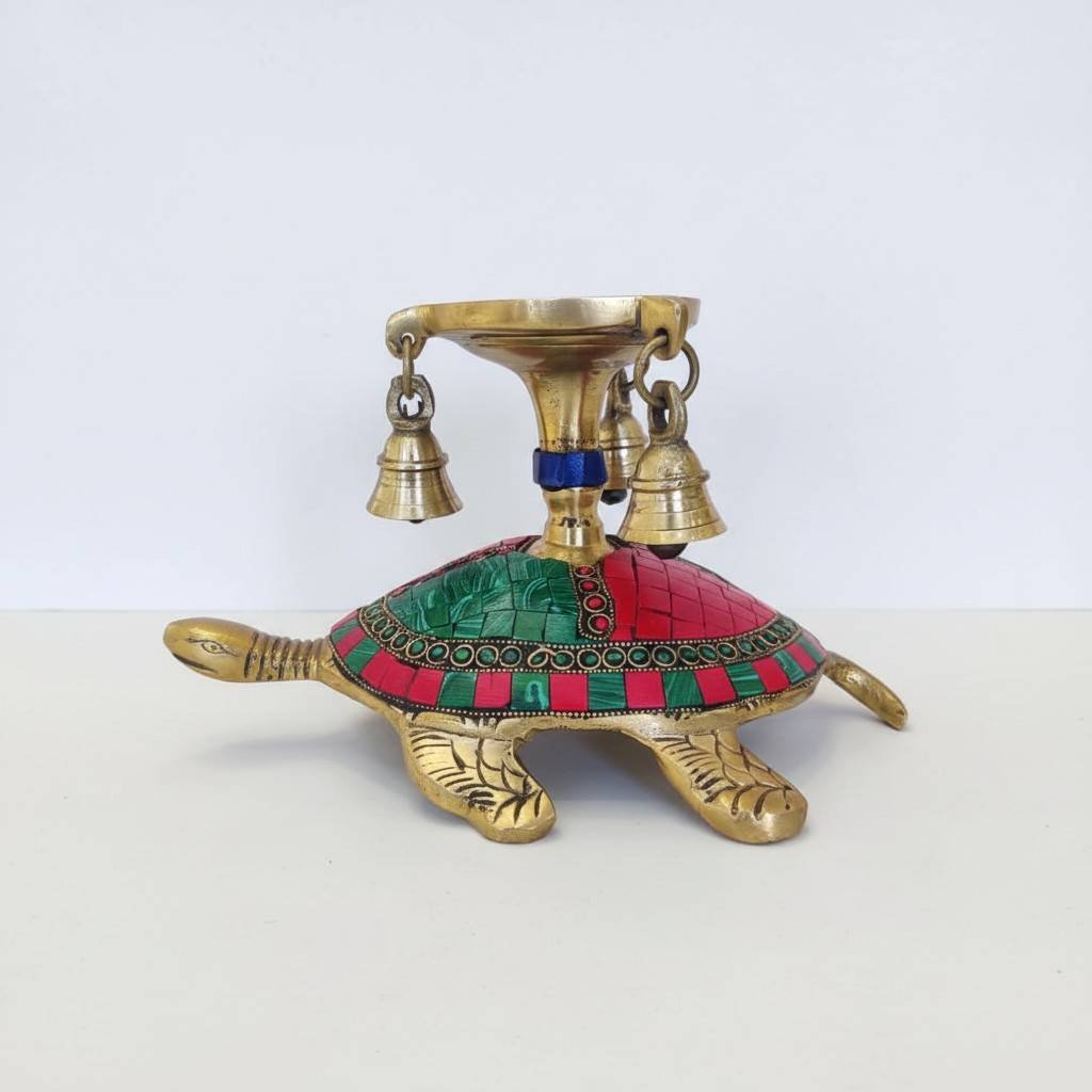 Vedas Brass Kachua Deepak with Stonework Idol & Figurine Showpiece