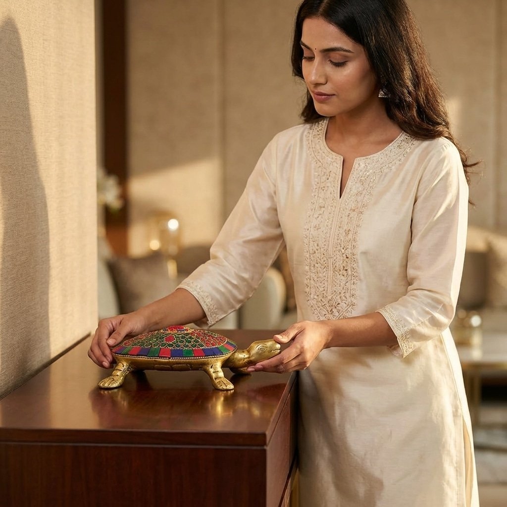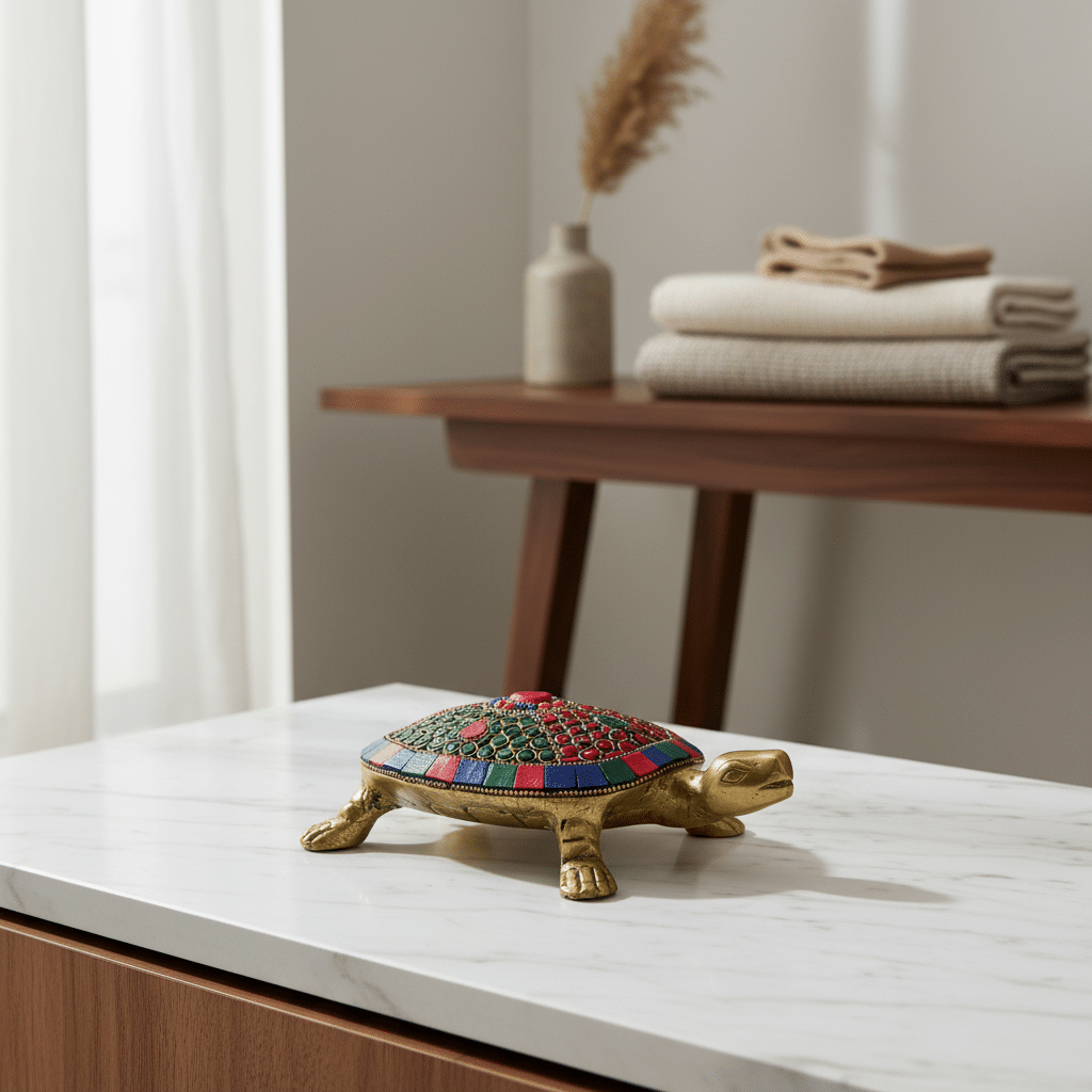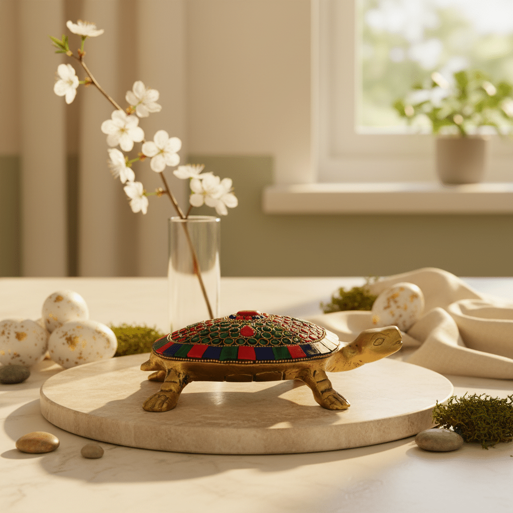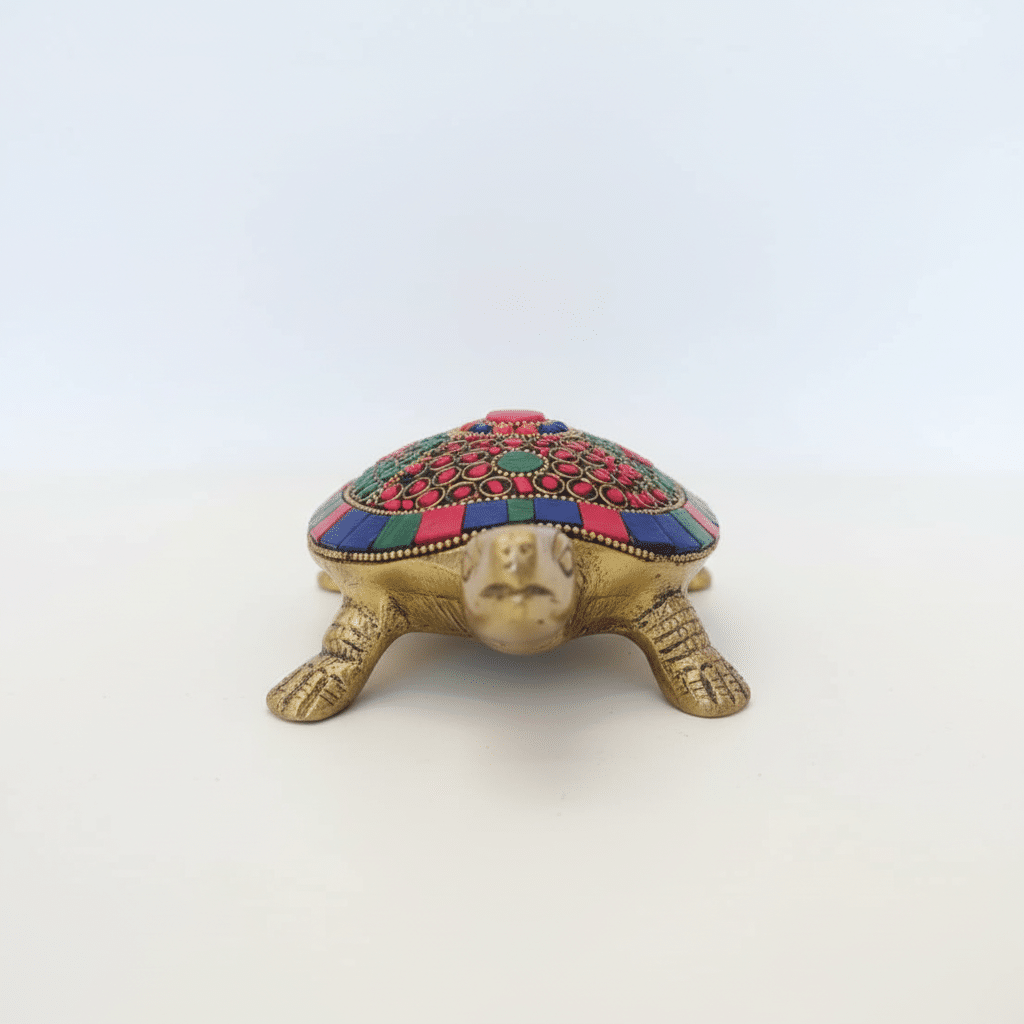 Vedas Brass Kacuhua with Stonework Idol & Figurine Showpiece