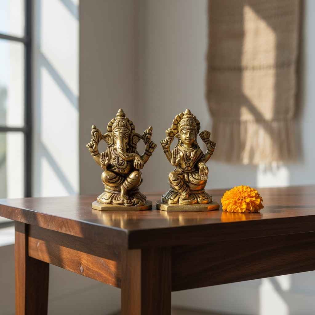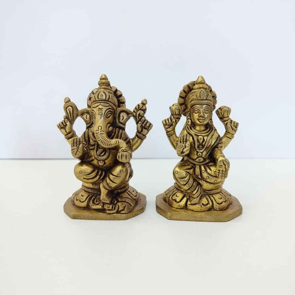 Vedas Fine Brass Laxmi Ganesha Idol & Figurine Showpiece (Set of 2)
