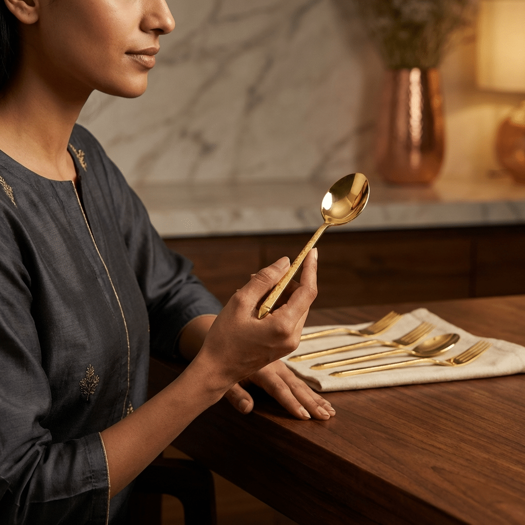 Design: Elegant gold cutlery finish for a sophisticated dining experience