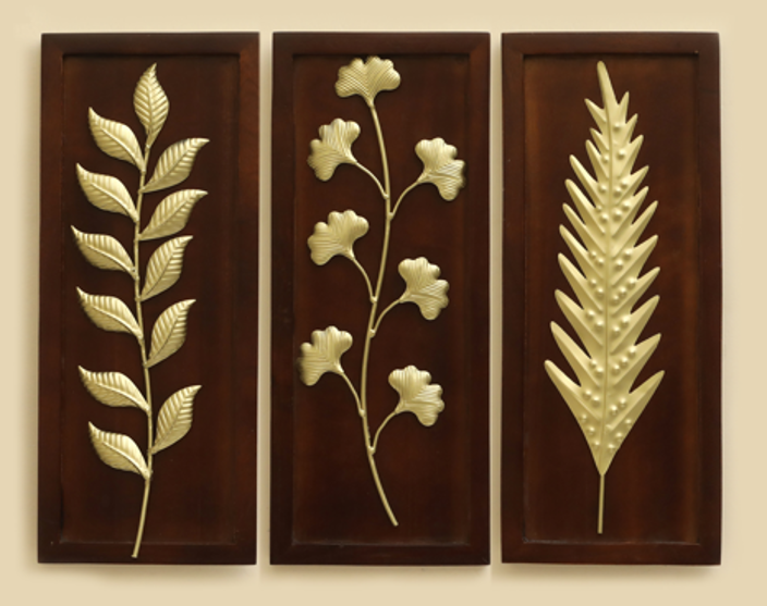 W-Evan Austin Harper Leaf Wall Décor on Wooden Frame Set of 3
