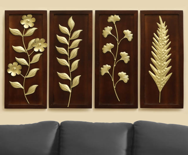 W-Oliver Evan Austin Harper Leaf Wall Décor on Wooden Frame Set of 4
