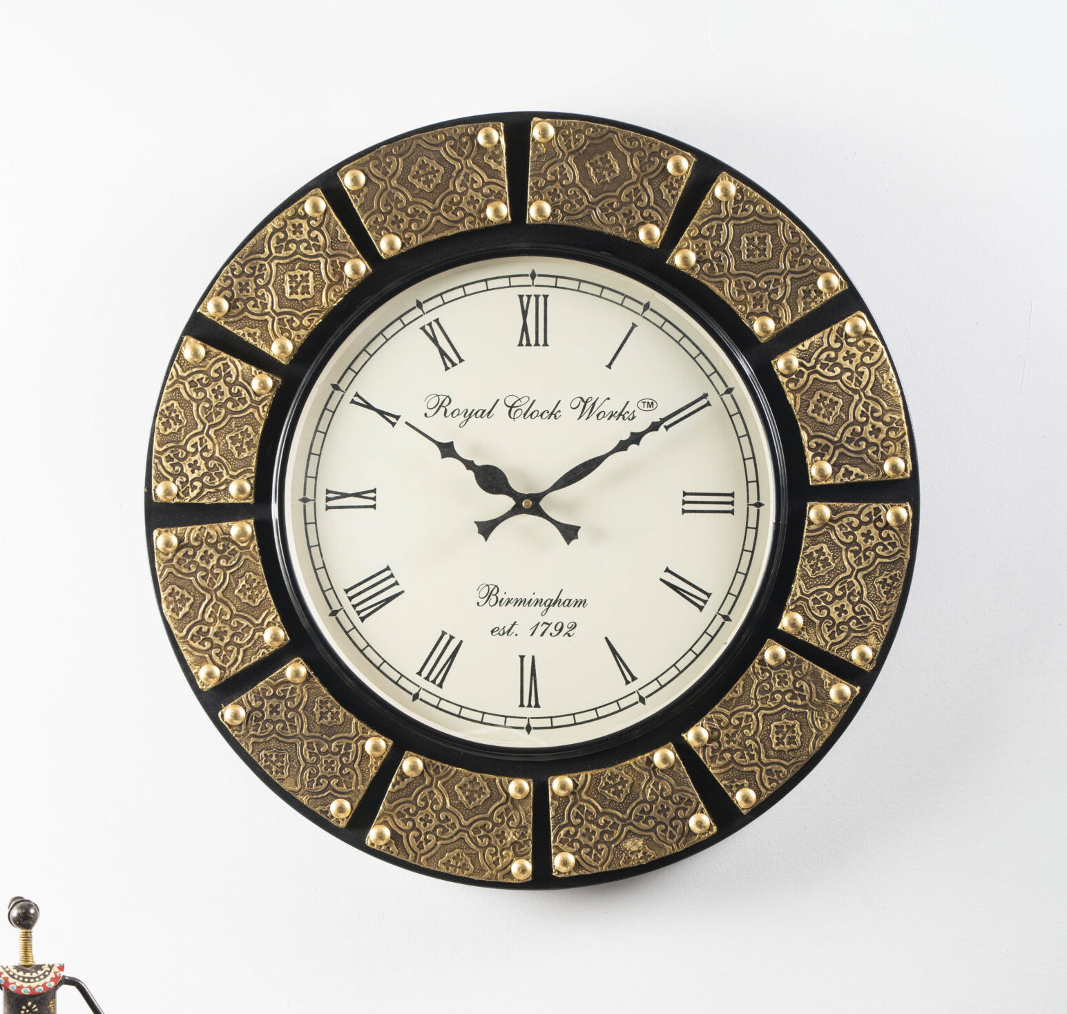 - Designer Wall Clock with large bold numbers with 24 Hours Dial creates easy viewing. Quiet and accurate quartz movement for reliable timekeeping. It requires 1 AA battery (not included) and a 100% satisfaction guarantee from Vedas.