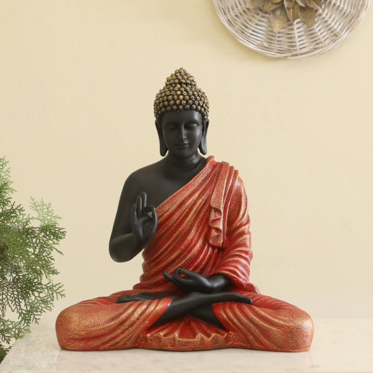 Polyresin Ory Buddha God Idol Showpiece Figurine Table Decor (Red & Black)