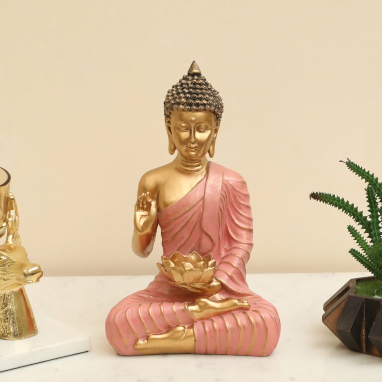 Polyresin Arro Buddha God Idol Showpiece Figurine Table Decor (Pink)
