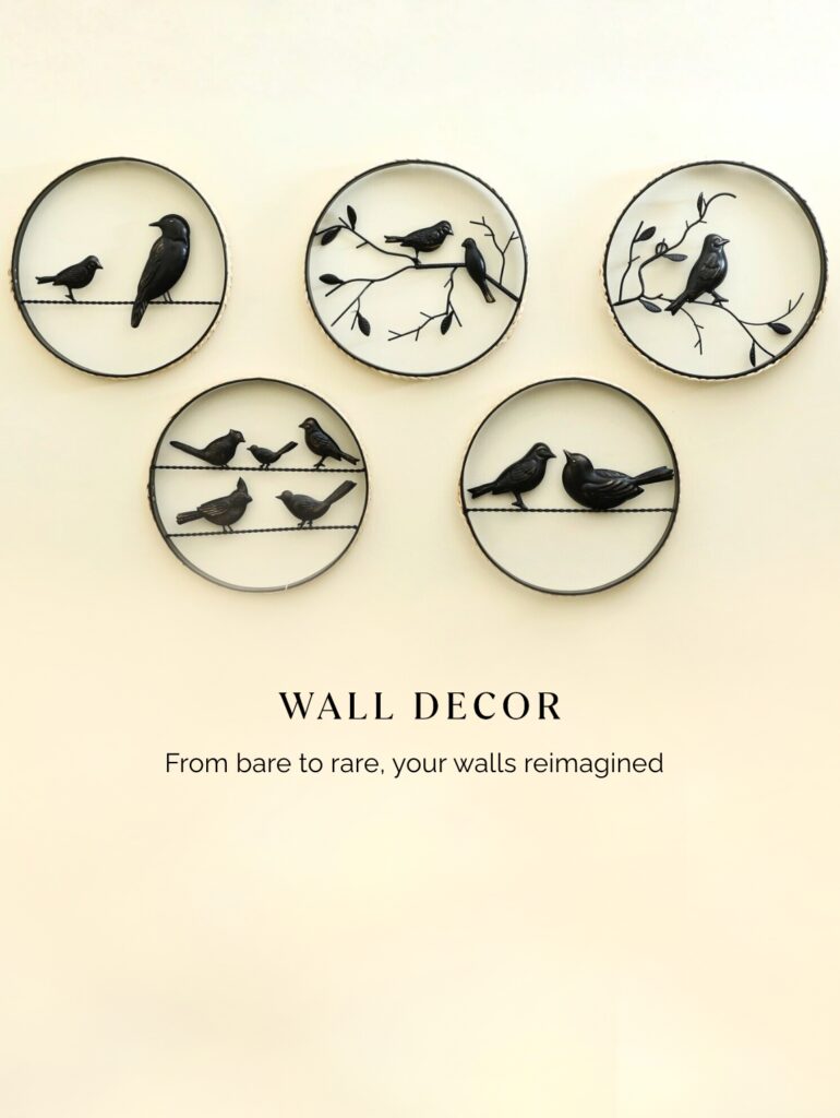Picking the right wall decor starts with your space and style. Large walls need statement art, while compact spaces benefit from mirrors or smaller clusters. Choose warm wood for cozy settings and metal art for bold, modern looks. Match the color of your decor with furniture tones for harmony. For a contrasting touch, pick vibrant wall plates against neutral walls. At VedasHomes, you will find designs that adapt to both minimalist and traditional interiors with ease.