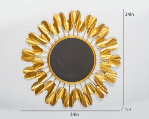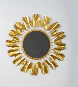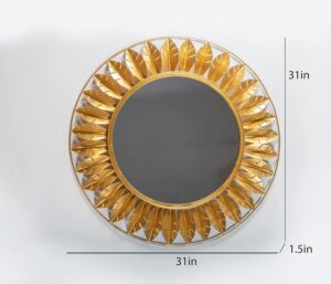 Gold Bee Balm Round Wall Mirror Modern Design Metal Frame
